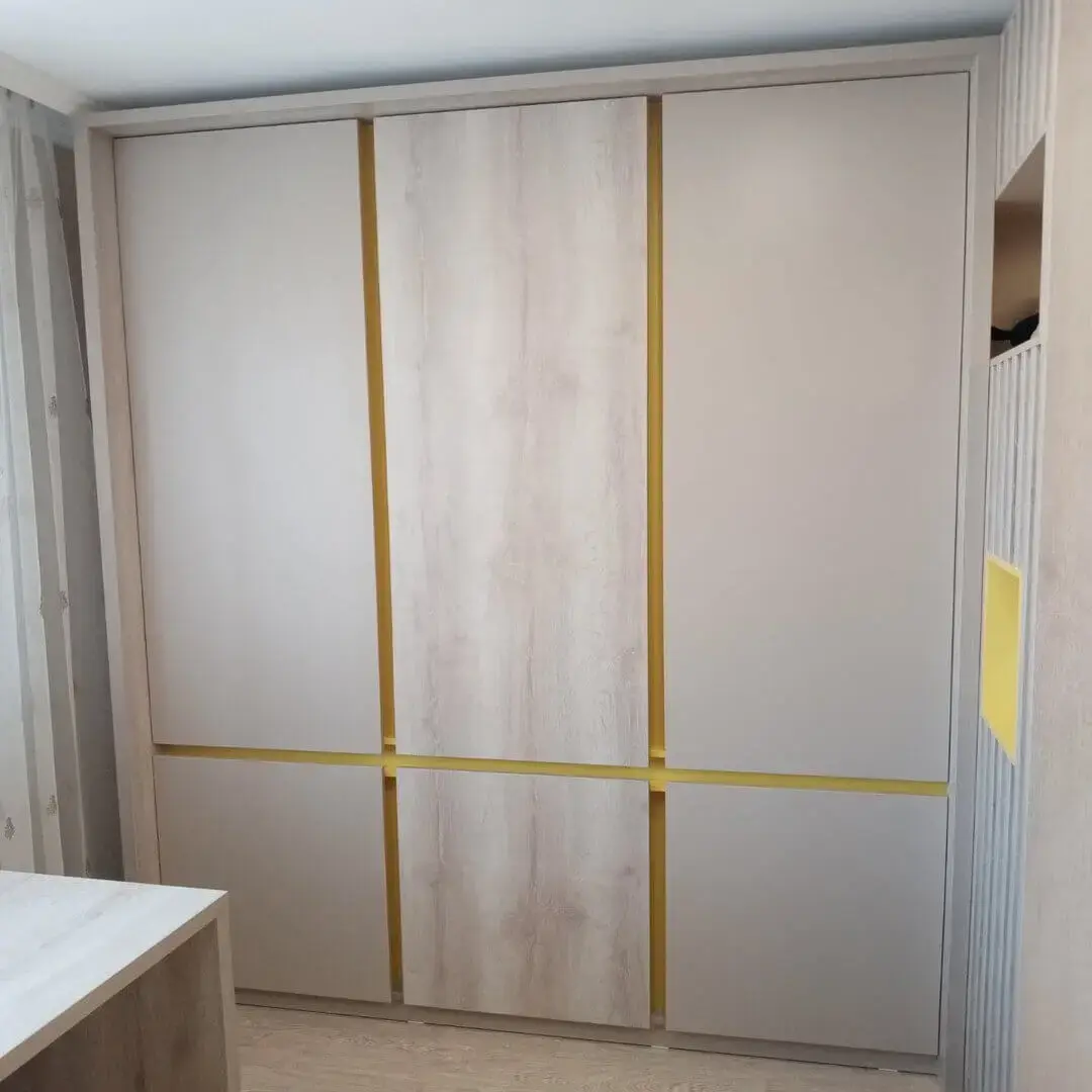 В комбинированных шкафах важны узлы стыка: где заканчивается купе и начинается распашная часть, как оформлен вертикальный профиль, где стоят ручки и какой у них вылет. Ошибка в несколько миллиметров может привести к тому, что распашная дверь будет задевать профиль купе или ручка станет «ловушкой» для соседней створки.